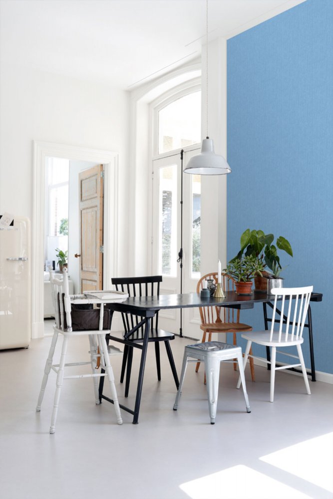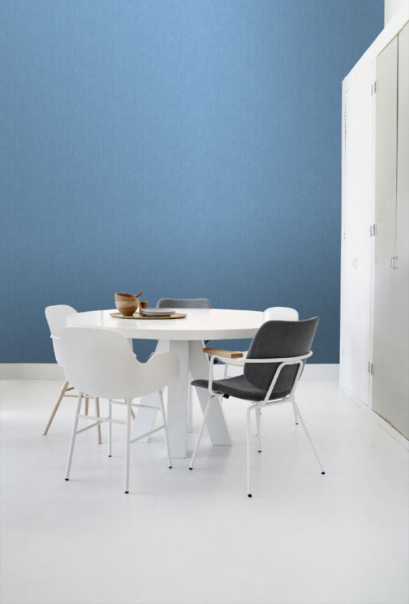 Strukturovaná vliesová tapeta na zeď, imitace modré režné látky.