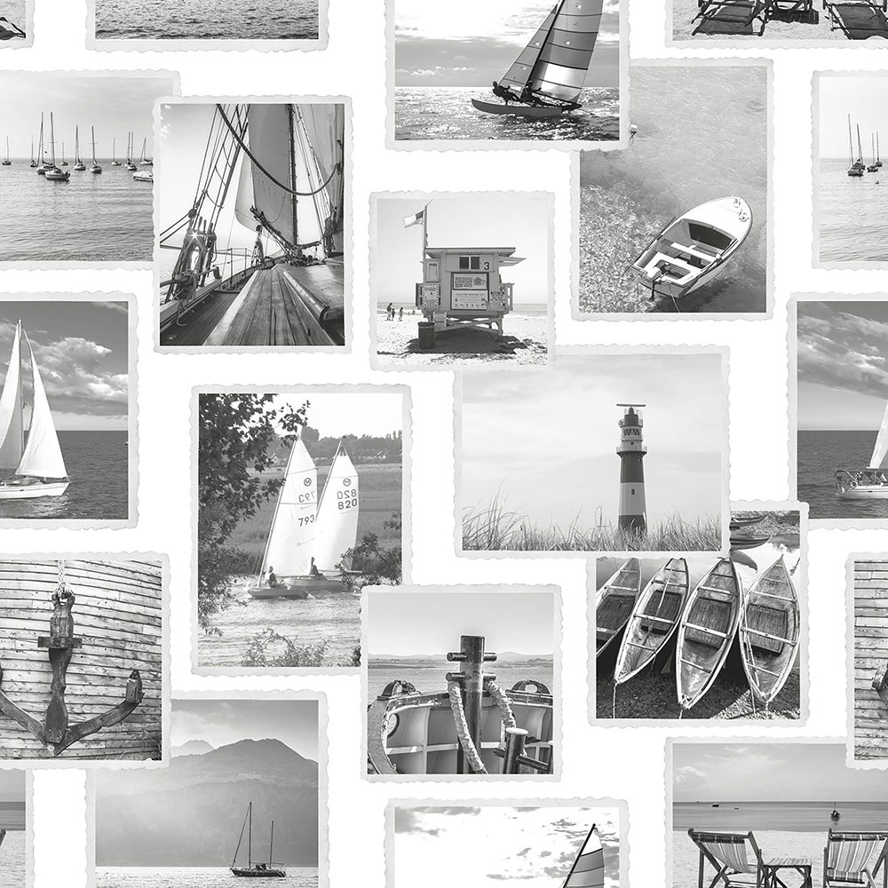 Vliesová tapeta na zeď, černobílé fotografie s mořskou tématikou - majáky, pláže, plachetnice...