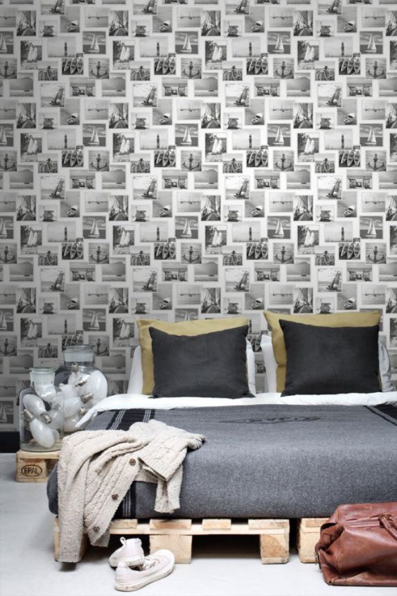 Černobílá vliesová tapeta na zeď Moře 138956, Regatta Crew, Esta Home