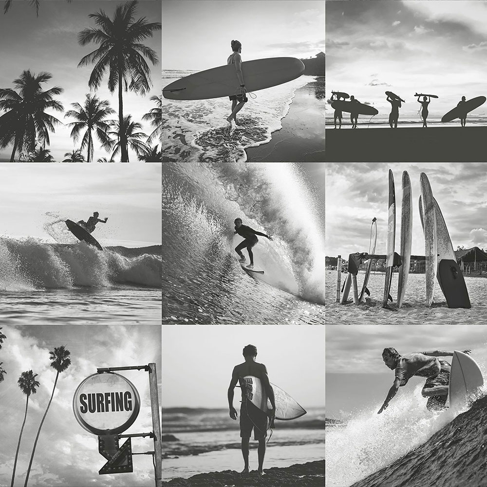 Vliesová tapeta na zeď, černobílé fotografie surfařů.