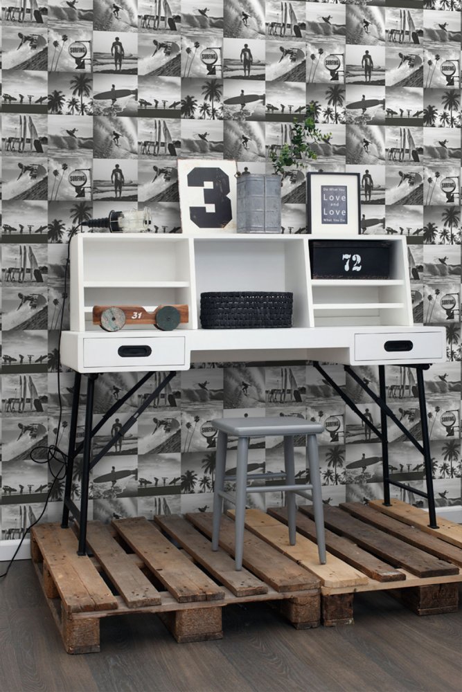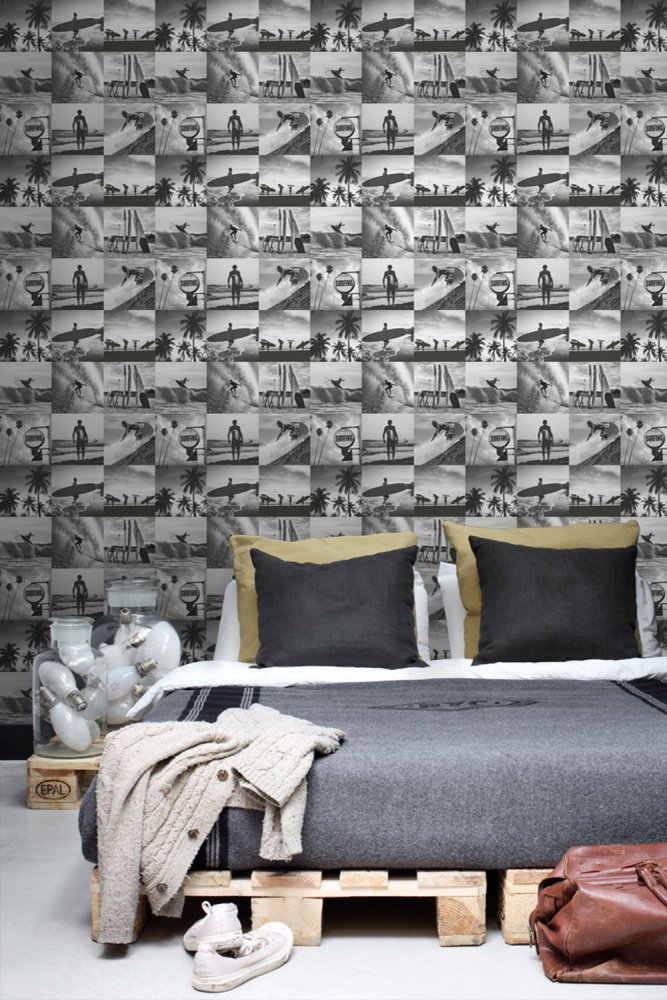 Černobílá vliesová tapeta na zeď Surfing 138955, Regatta Crew, Esta Home