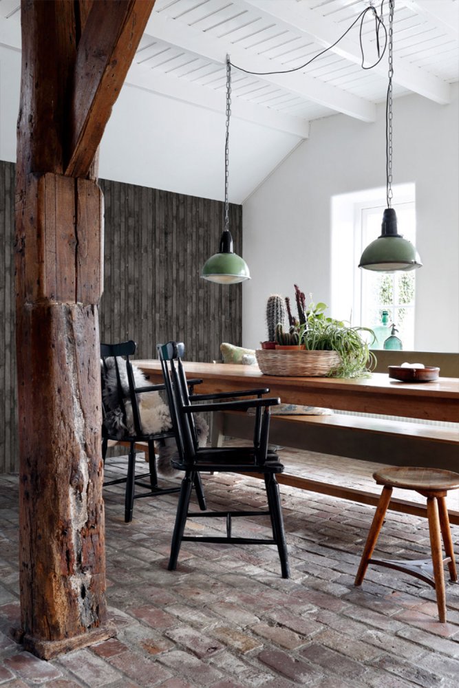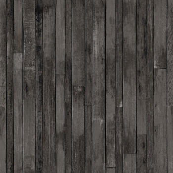 Tmavě hnědá vliesová tapeta na zeď, imitace dřeva, dřevěných palubek.
