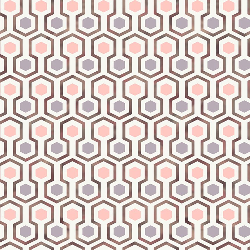 Geometrická vliesová tapeta na zeď, barevné hexagony, metalické linie.