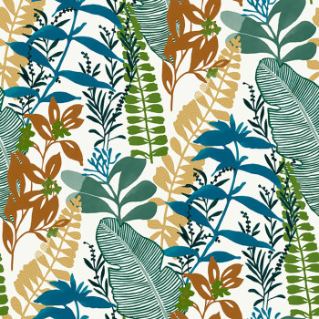 Vliesová tapeta na zeď, rostlinné motivy, listy, odstíny okrové, hnědé, zelené.