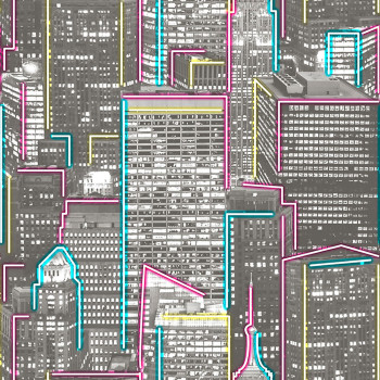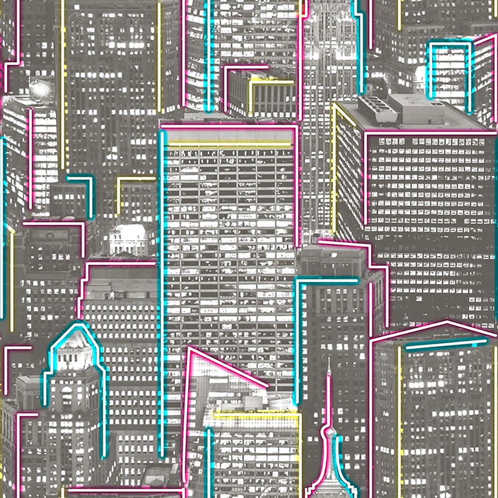 Tapeta Glow in the dark - Noční město - části vzoru svítí ve tmě.