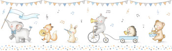 Roztomilá dětská samolepící bordura se zvířátky - hudebníky.