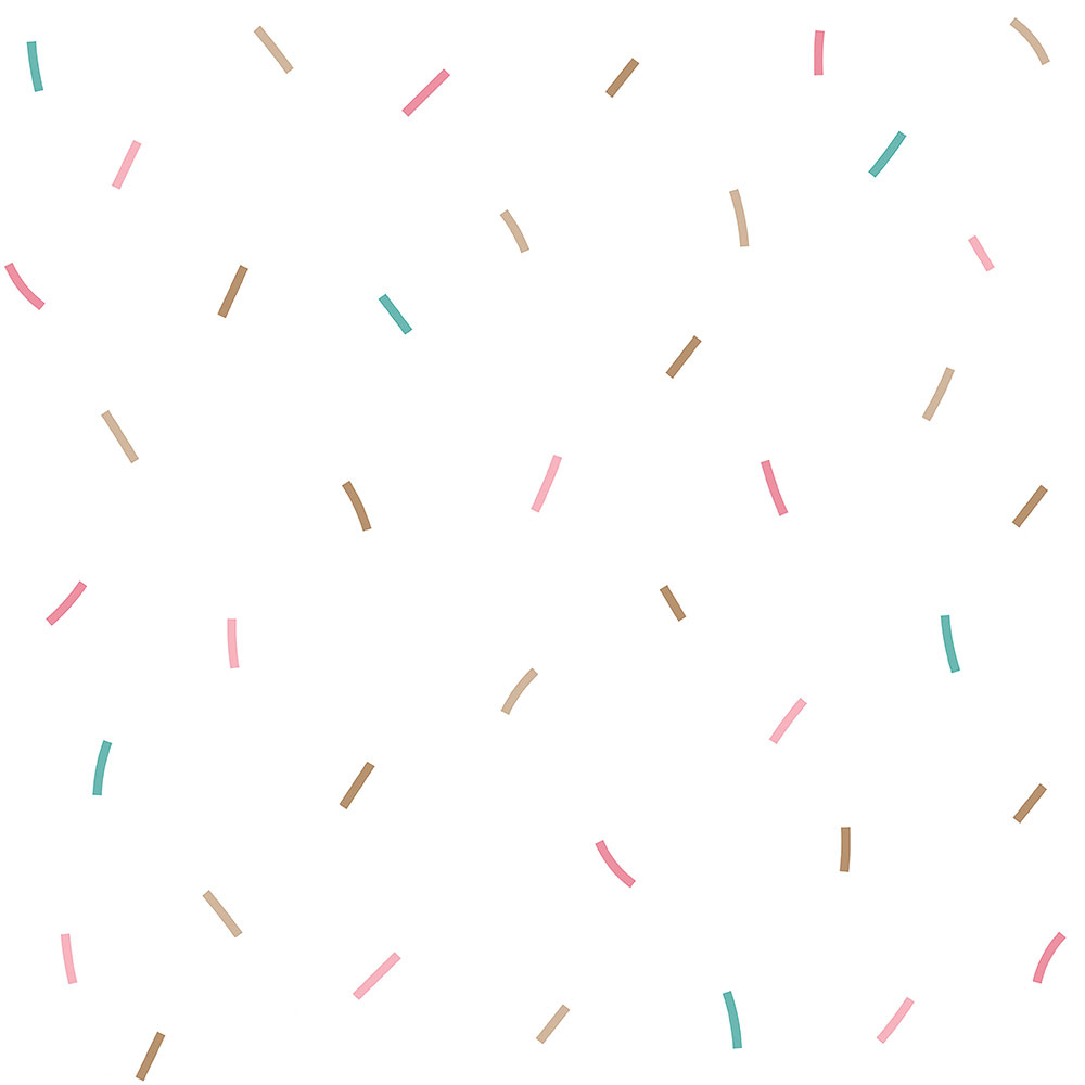 Papírová tapeta bílá, barevné nepravidelné čárky.