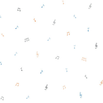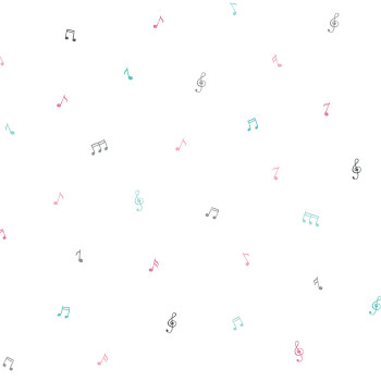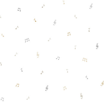 Papírová tapeta bílá, motiv barevných not a houslových klíčů.
