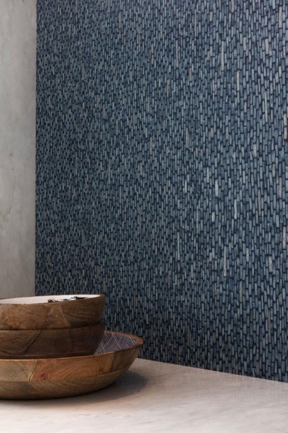Vliesová tapeta. Jemně plastická textura v odstínech modré, stříbrné detaily.