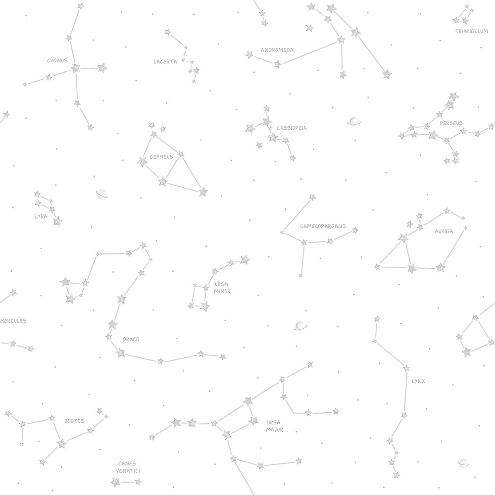 Bílá papírová tapeta na zeď, souhvězdí v šedé barvě.