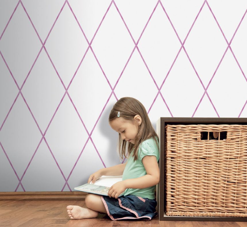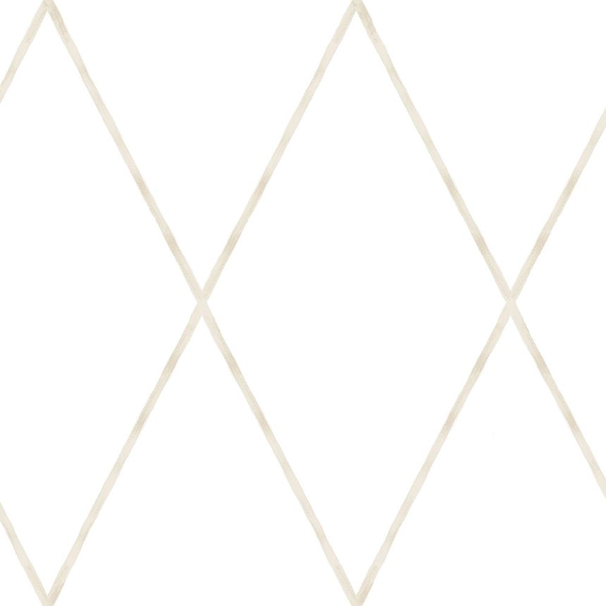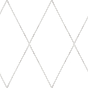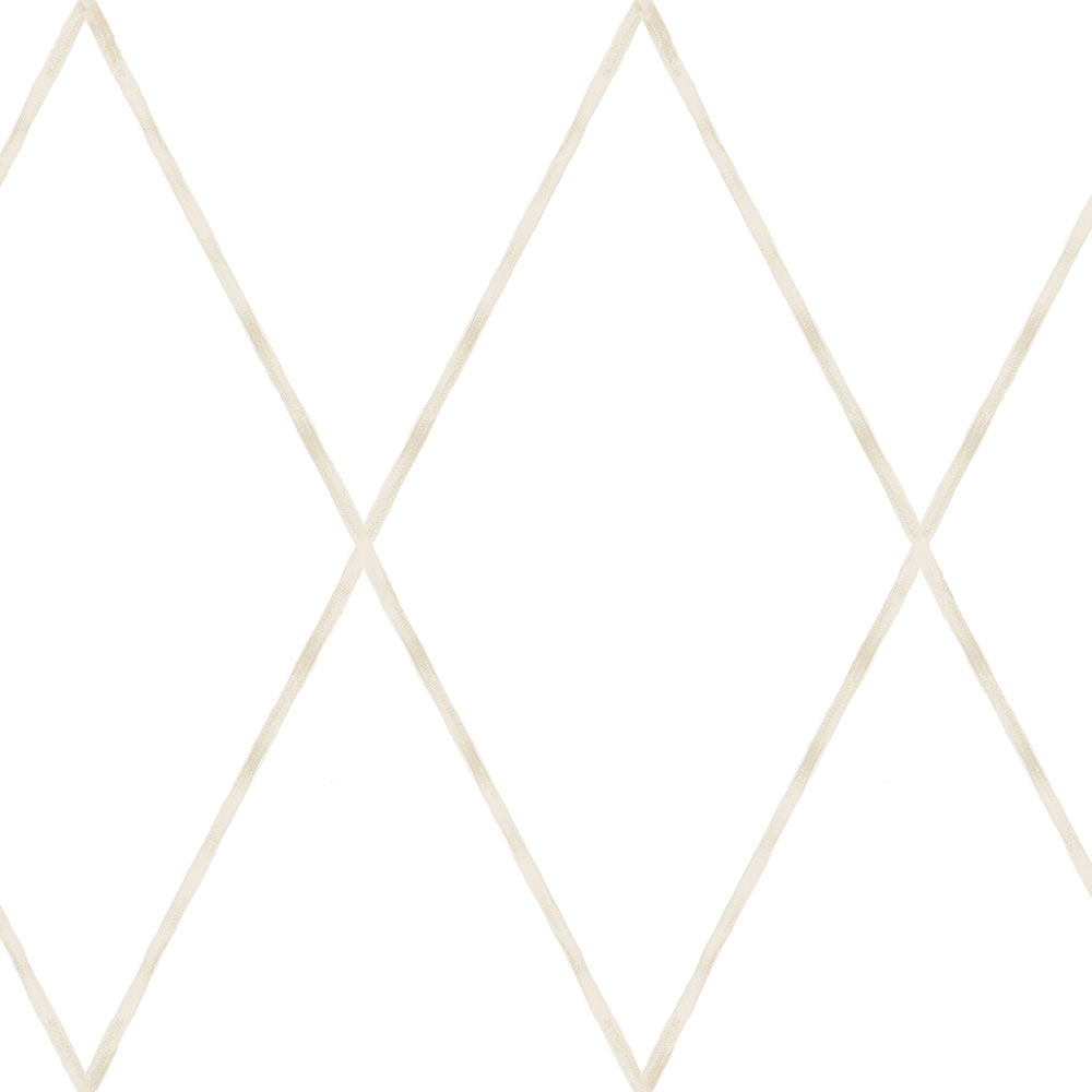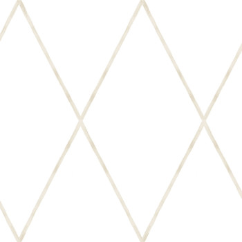 Bílá papírová tapeta na zeď, béžové obrysy kosočtverců.