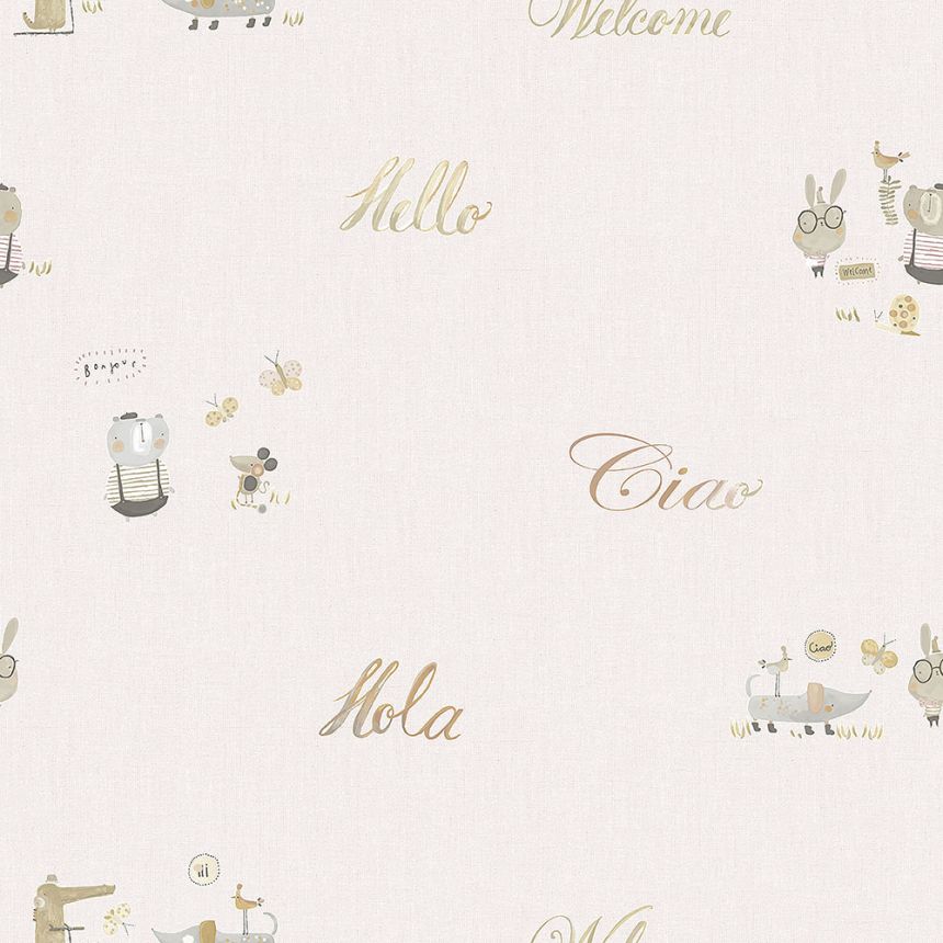 Krémová papírová dětská tapeta se zvířátky a nápisy 3353-3, Oh lala, ICH Wallcoverings