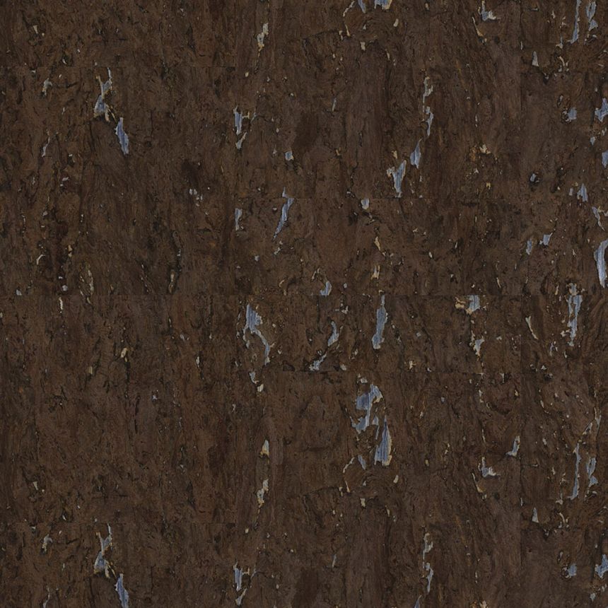 Tmavá hnědá tapeta z přírodního korku, podkladový papír v prolisech metalická stříbrná.
