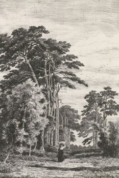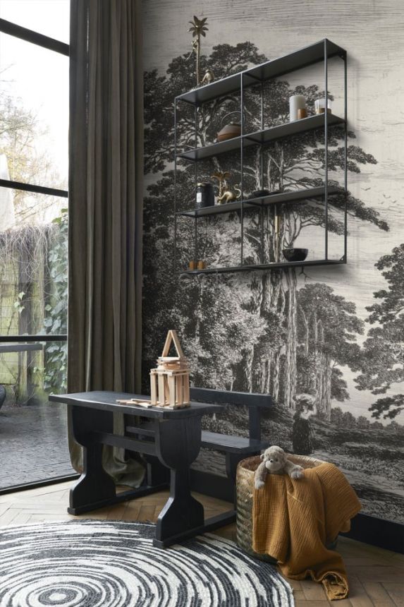 Vliesová obrazová tapeta na zeď, rytina borovicového lesa.