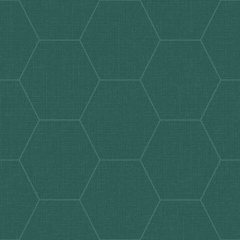 Geometrická vliesová tapeta s látkovou texturou, obrysy hexagonů, melanž v zelených odstínech.