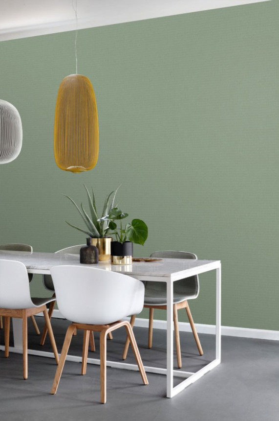 Vliesová tapeta na zeď s jemnou texturou, imitace látky v odstínech zelené, melanž.