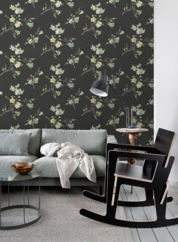 Černá vliesová tapeta s rozkvetlými větvičkami 148719, Blush, Esta Home