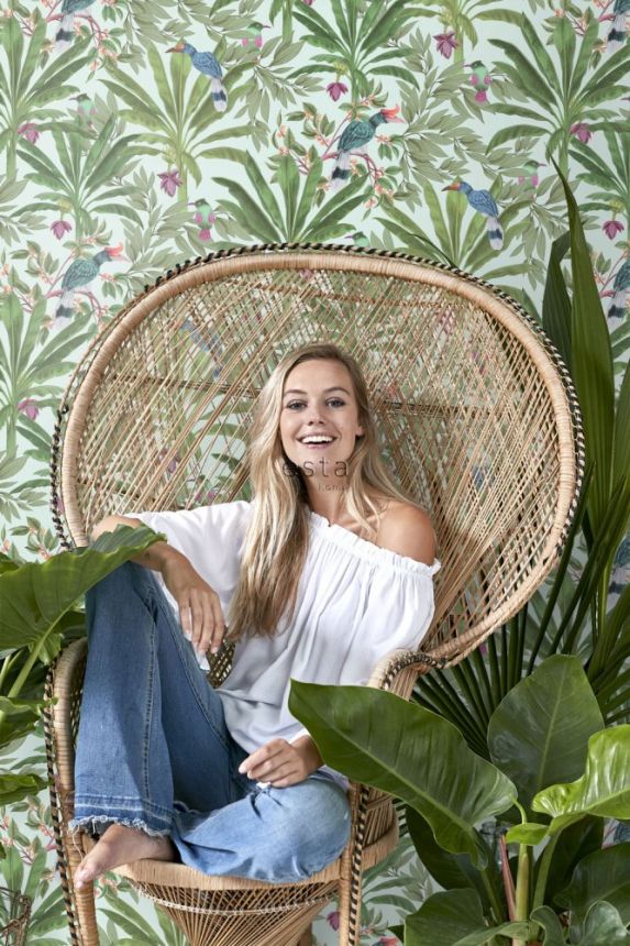 Vliesová tapeta na zeď- rostliny, listy, ptáci 139189, Paradise, Esta Home