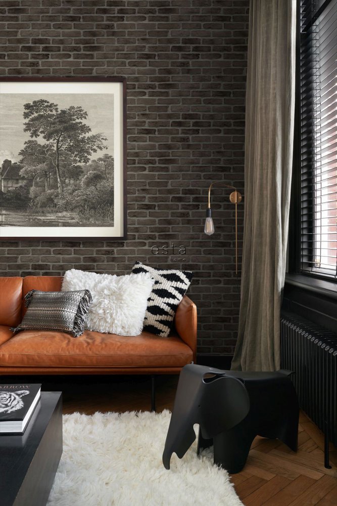 Vliesová tapeta na zeď, černé cihly, cihlová zeď 139167, Paradise, Esta Home