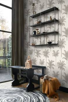 Béžová vliesová tapeta na zeď, hnědé obrysy palem.