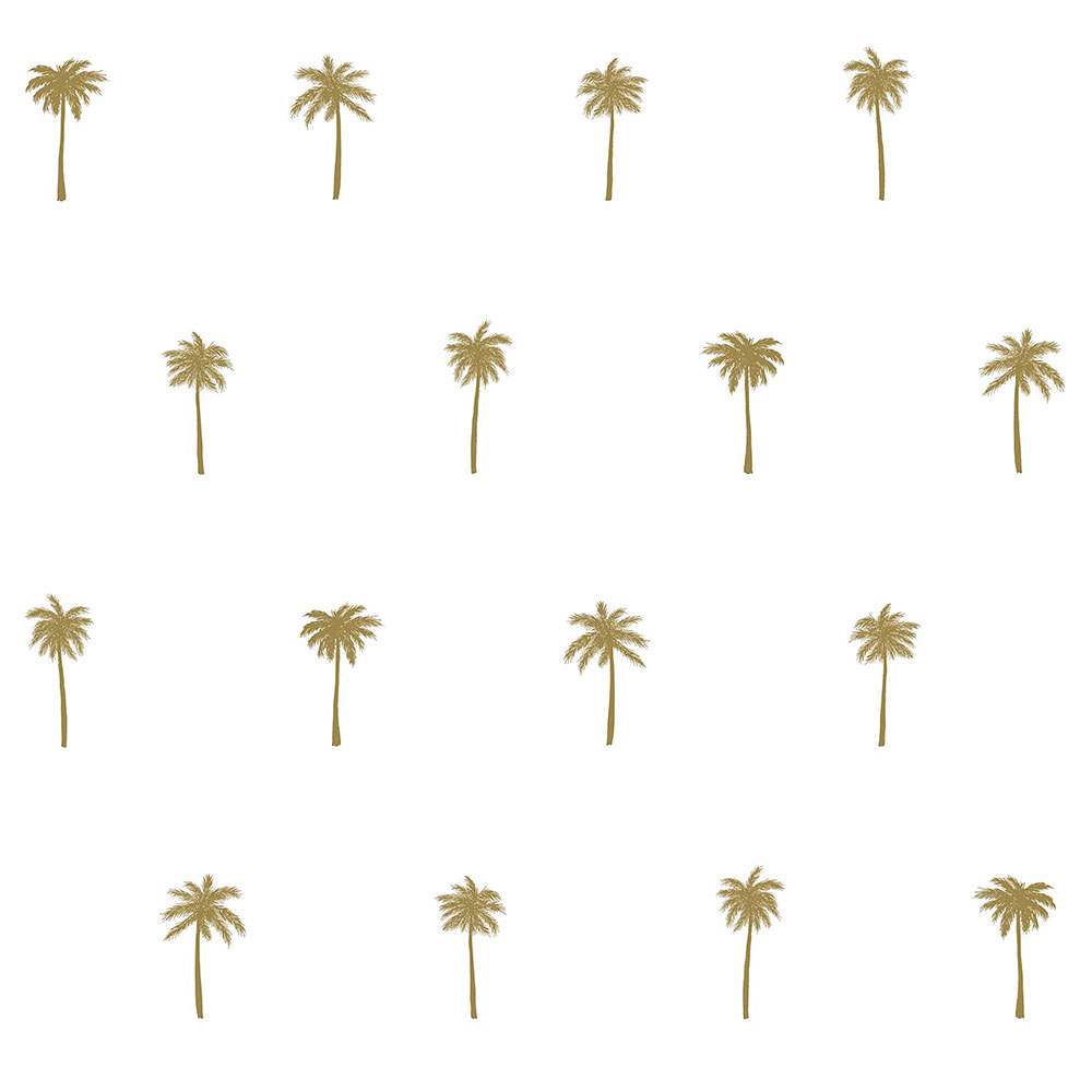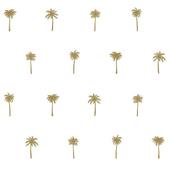 Bílá vliesová tapeta na zeď, zlaté motivy palem.