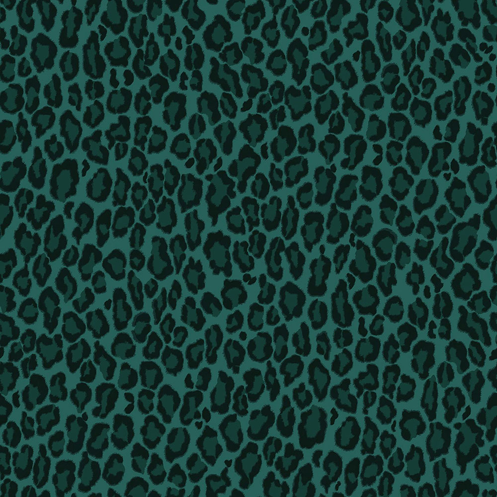 Zelená vliesová tapeta na zeď, imitace kůže leoparda.