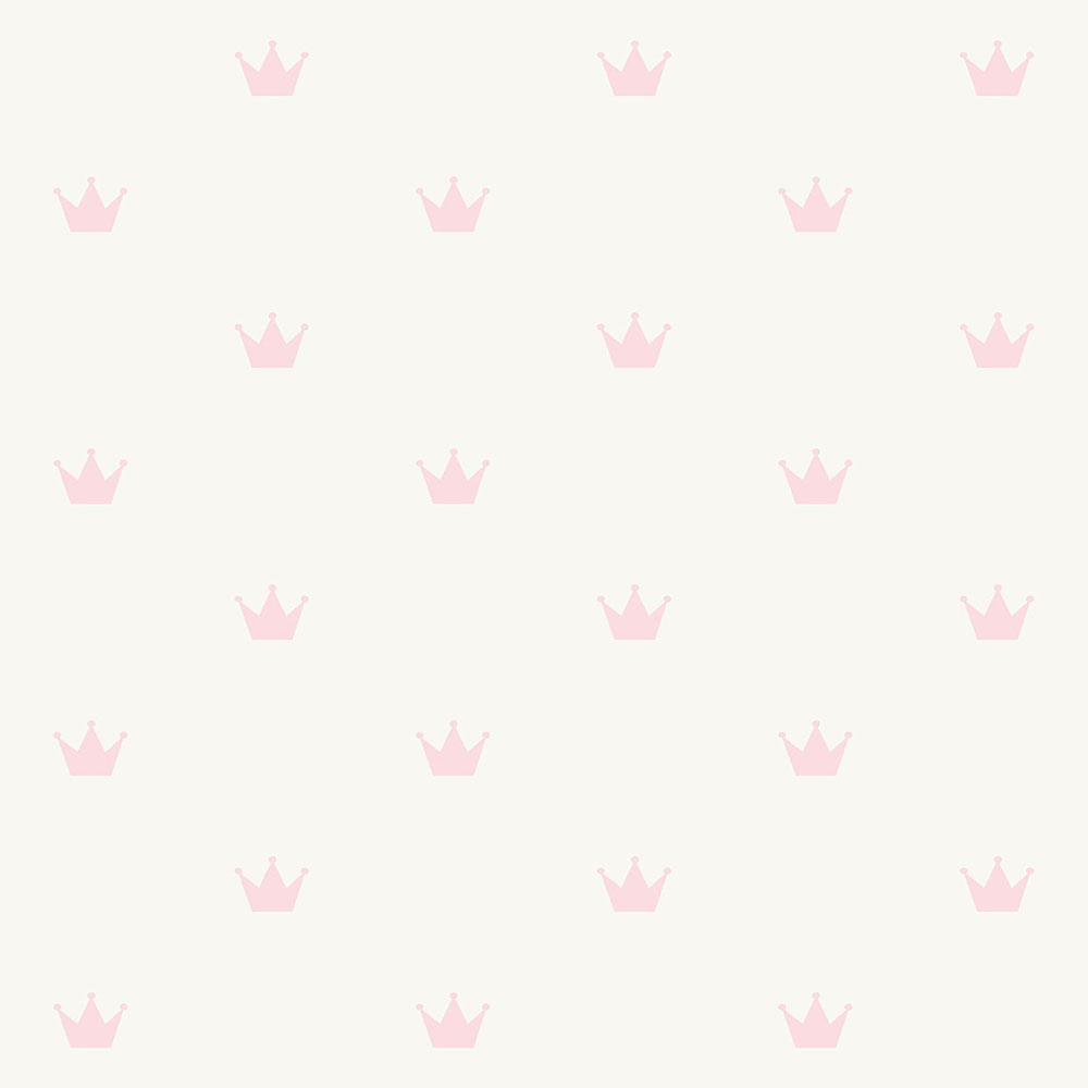 Vliesová tapeta pro malé princezny - metalická perlová tapeta s růžovými korunkami.