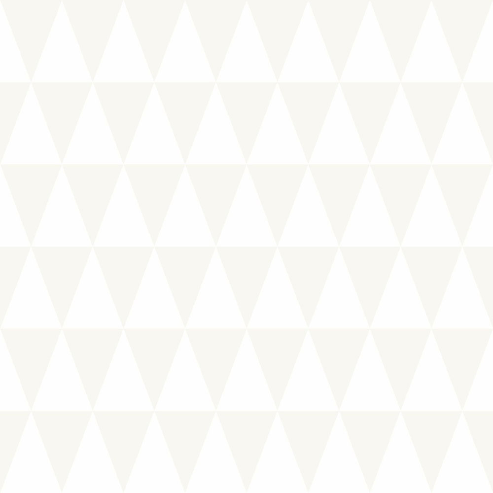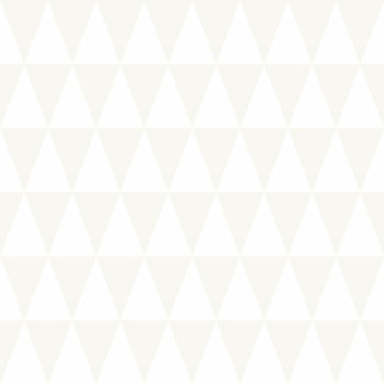 Geometrická vliesová tapeta na zeď - bílé matné a krémové metalické trojúhelníky.