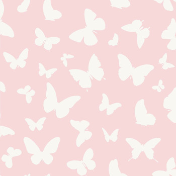Vliesová metalická růžová tapeta na zeď, motýlci s perlovým leskem.