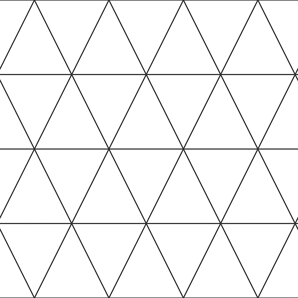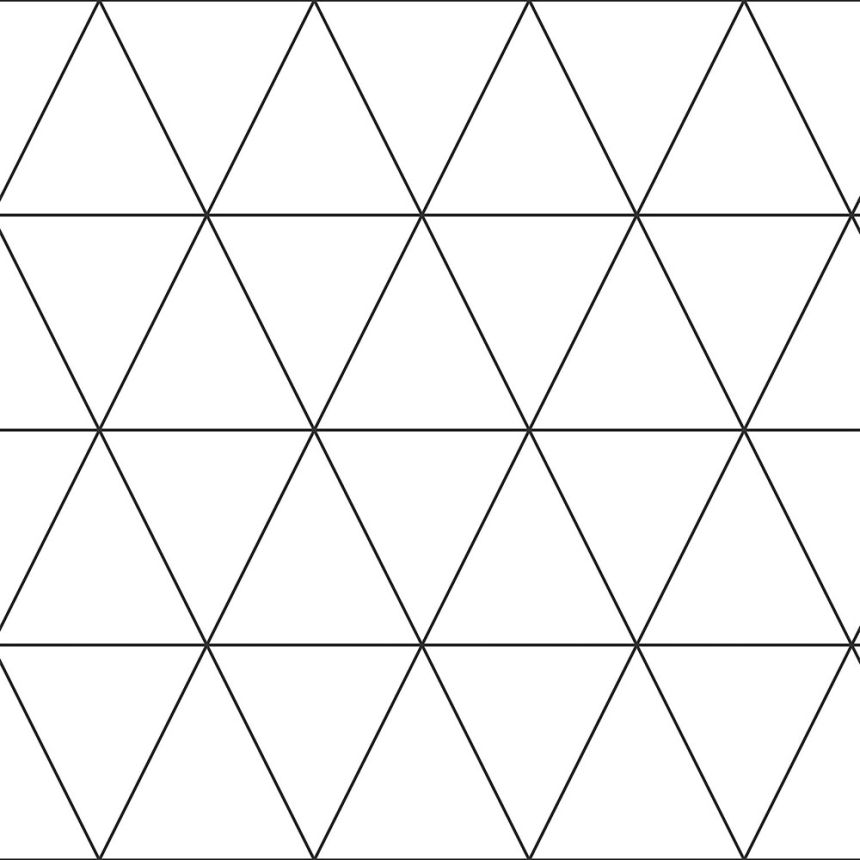 Bílá vliesová tapeta s černými obrysy trojúhelníků.