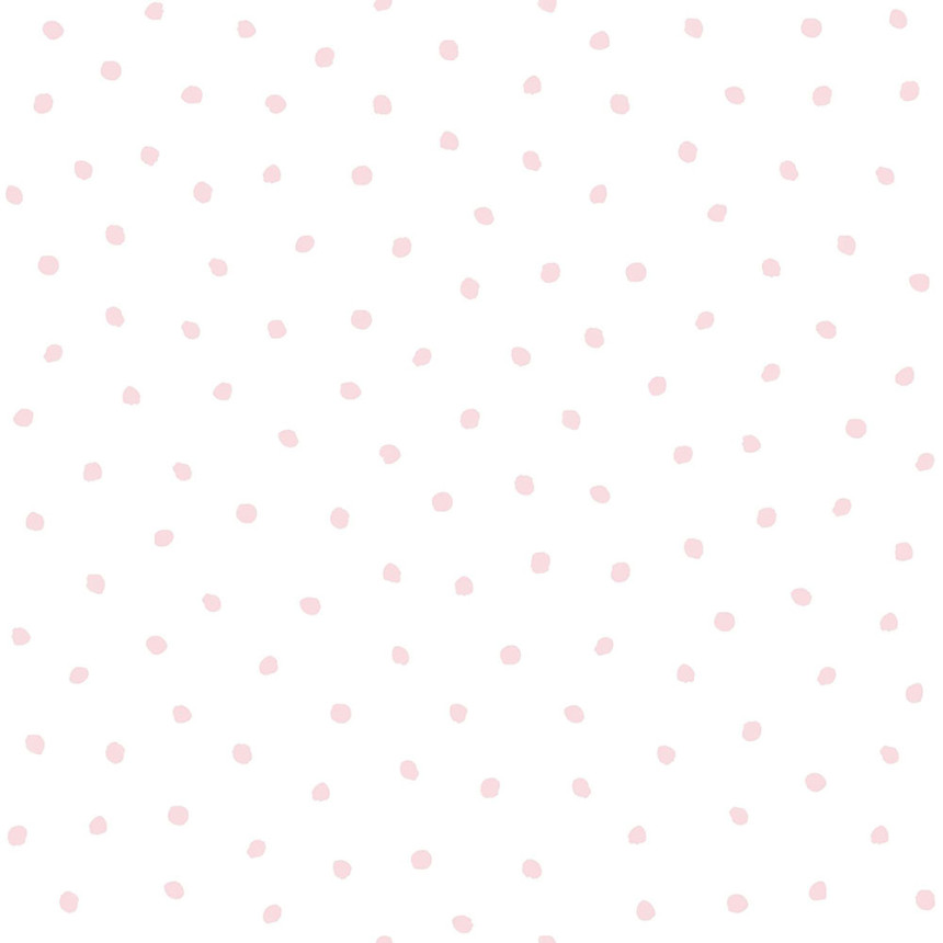 Vliesová tapeta s perlovým leskem a růžovými puntíky.