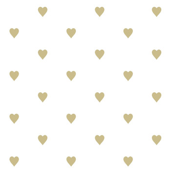 Vliesová bílá tapeta na zeď, zlatá srdíčka.