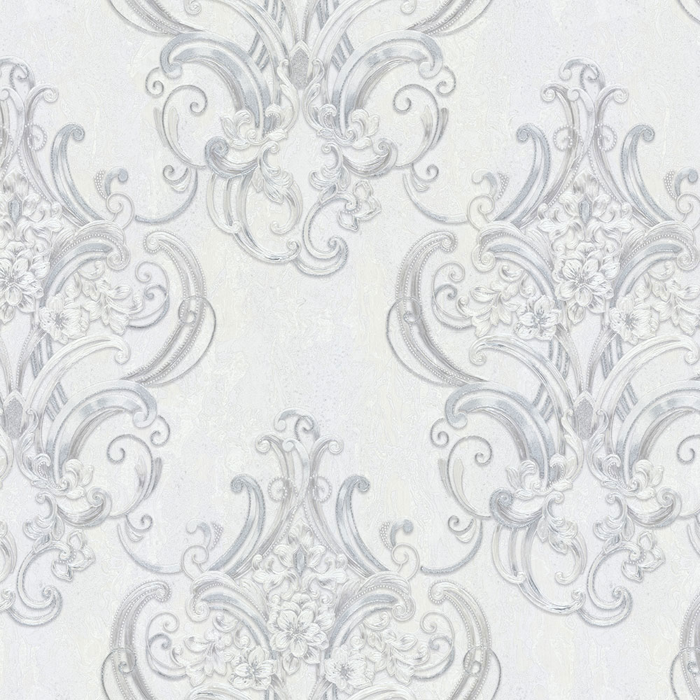 Světle šedá stříbrná luxusní vliesová zámecká tapeta s výrazným ornamentálním vzorem.