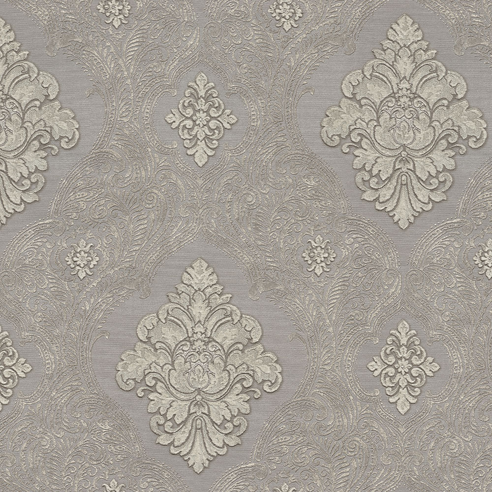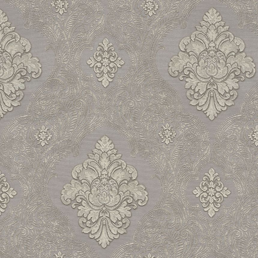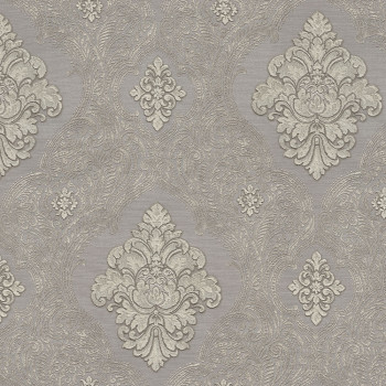 Šedá luxusní vliesová zámecká tapeta s výrazným ornamentálním vzorem.