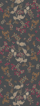 Květinová obrazová tapeta v tónech červené, hnědé na tmavě modrém podkladu.