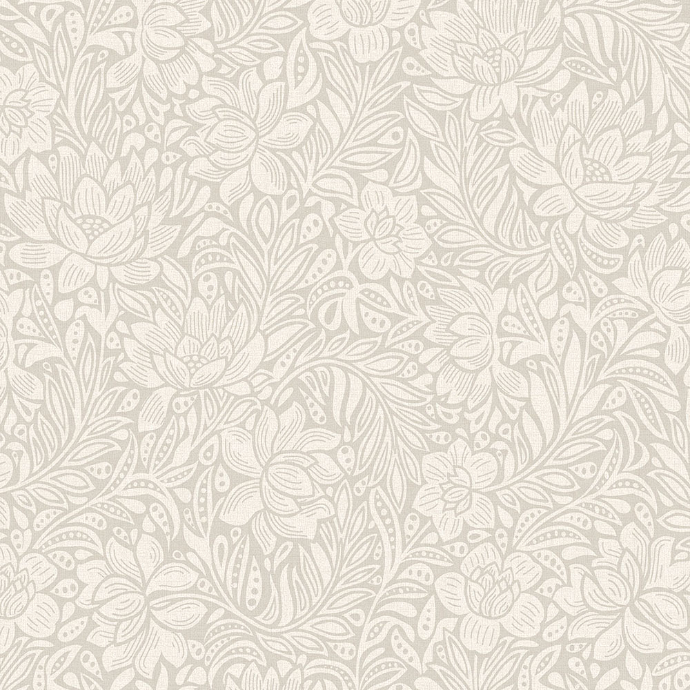 Květinová tapeta s přírodními motivy v béžových tónech.