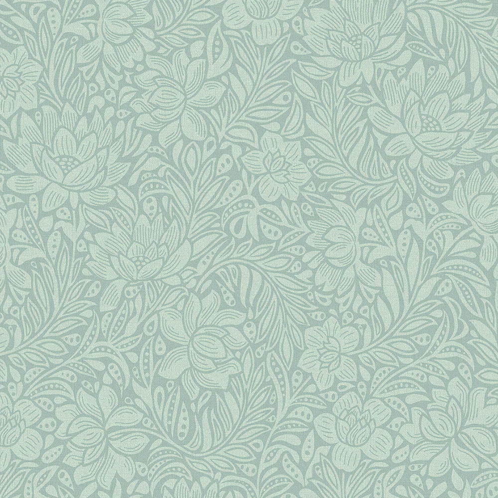 Květinová tapeta s přírodními motivy světle zelené a šedé barvy.