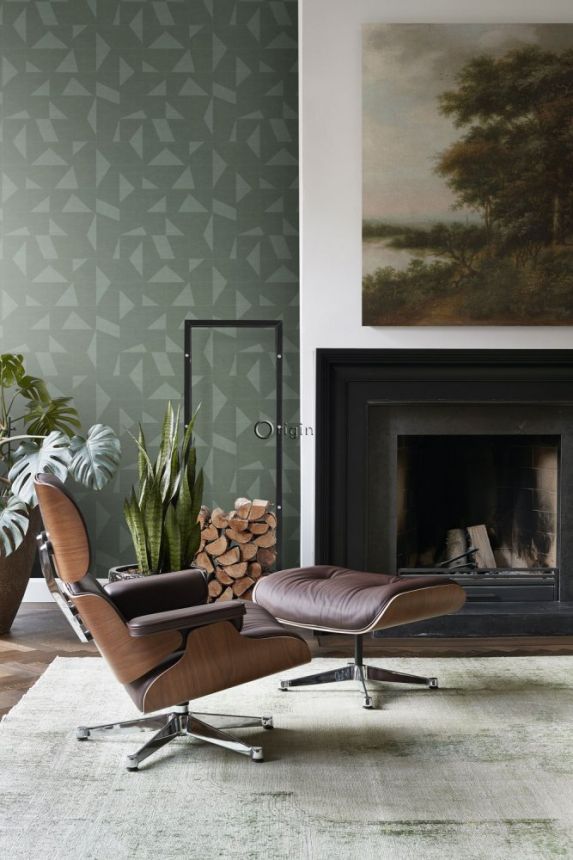 Vliesová zelená geometrická tapeta s látkovou texturou 347755, Natural Fabrics, Origin