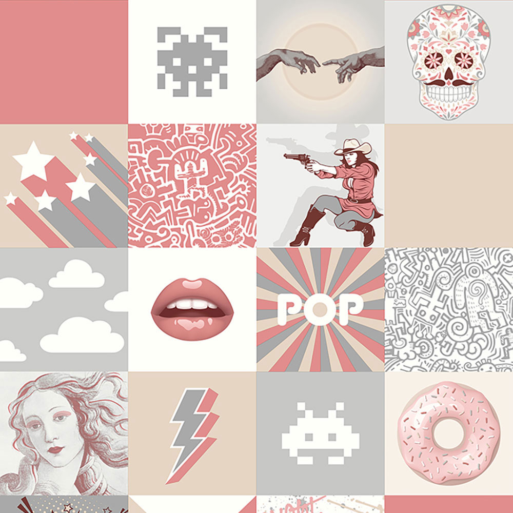 Vliesová kolážová tapeta pro teenagery, nápisy, grafické vzory.