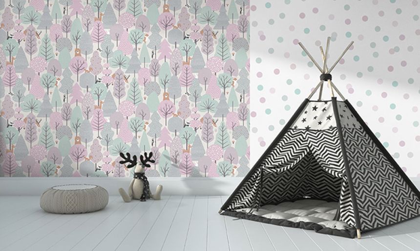 Vliesová dětská tapeta - motivy lesních zvířátek a lesa.