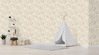 Květinová vliesová béžová tapeta s 3D prostorovým efektem.
