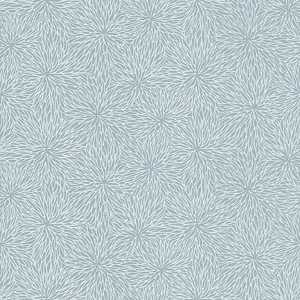 Vliesová , metalickámodrá, pololesklá tapeta s květinovým vzorem. Obrysy z plastického jemně hebkého, bílého flocku.