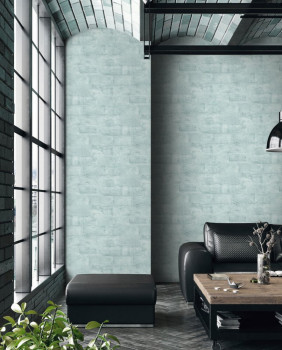 Vliesová tyrkysová omyvatelná tapeta na zeď cihly, cihlová zeď M53004, Loft, Ugépa