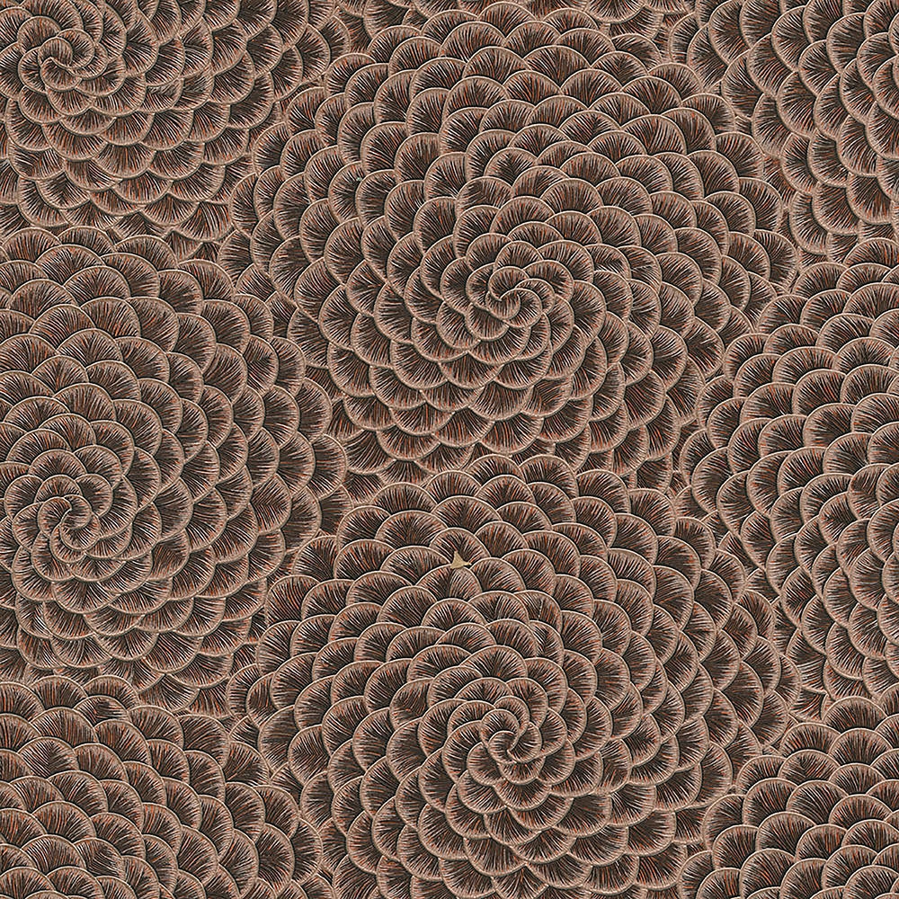 Vliesová tapeta s lístky květin. Hnědá jemně plastická tapeta, okraje lístů bronz.