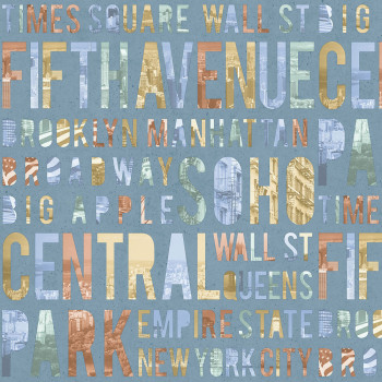 Šíře role 1,06 m. Vliesová tapeta s omyvatelným vinylovým povrchem - motiv města, nápisy.