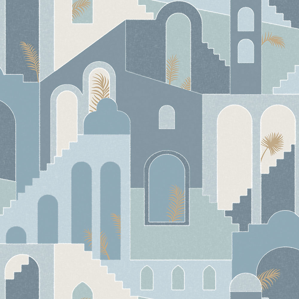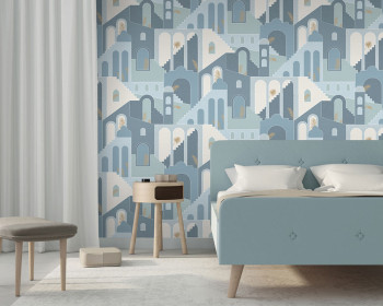 Vliesová modrá grafická tapeta na zeď Město M47301, Arty, Ugépa