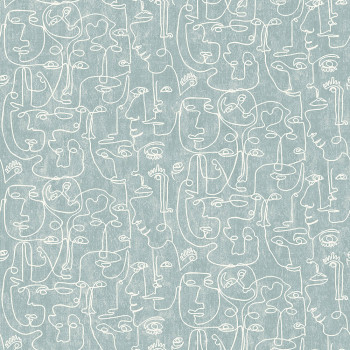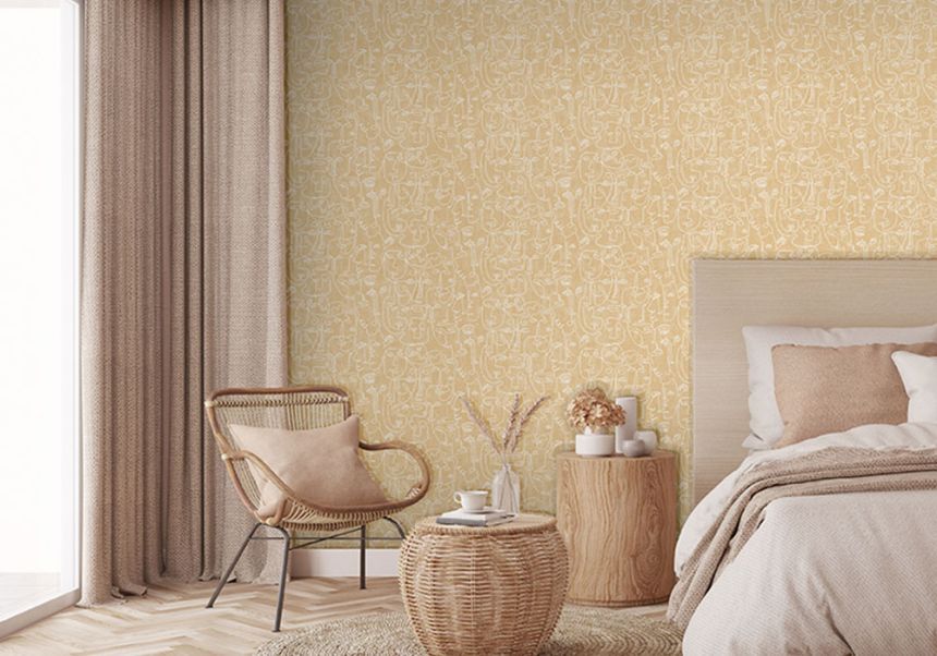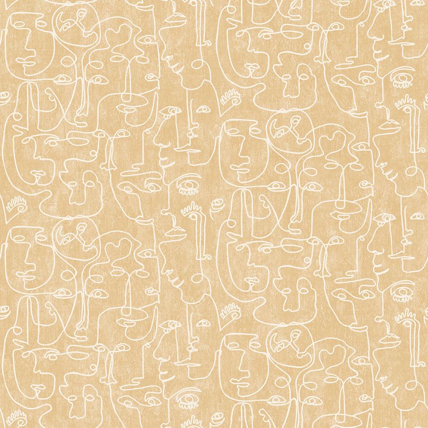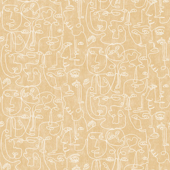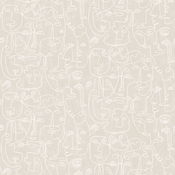 Vliesová grafická hnědo-béžová tapeta - obrysy tváří, obličejů.