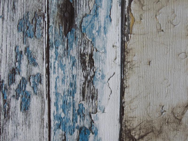 Vzor oprýskaných dřevěných palubek na vliesové tapetě na zeď.