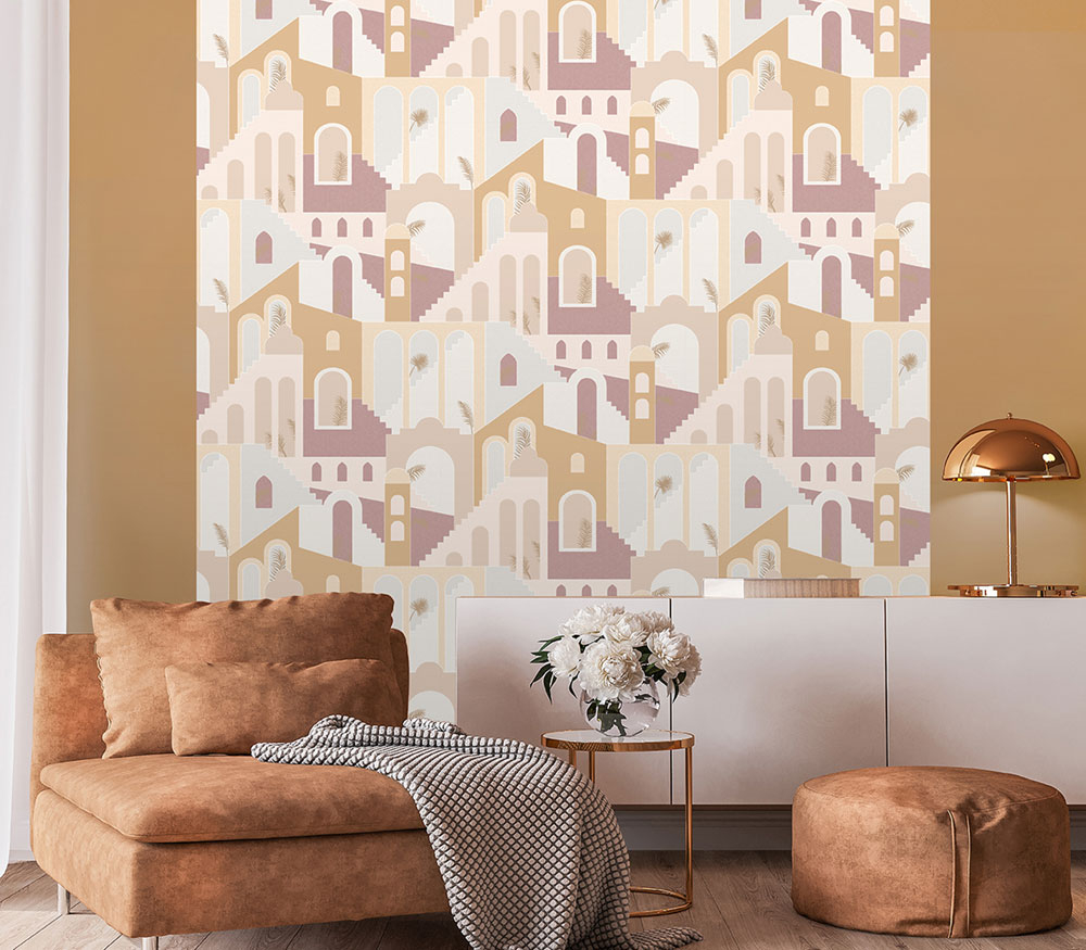 Vliesová grafická tapeta na zeď, motiv středomořského města.