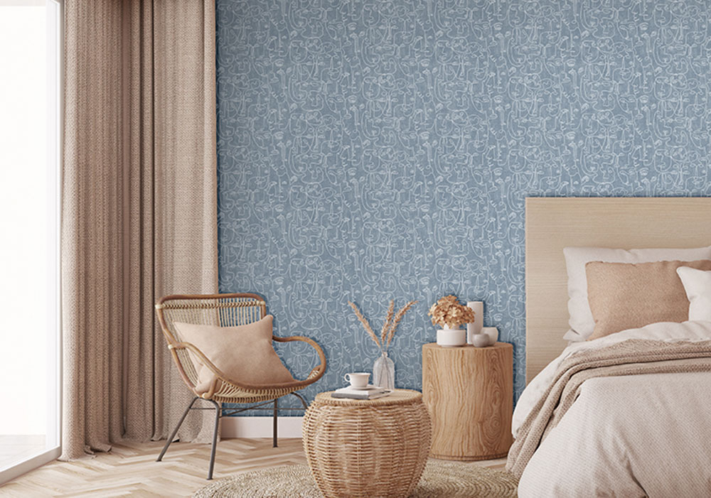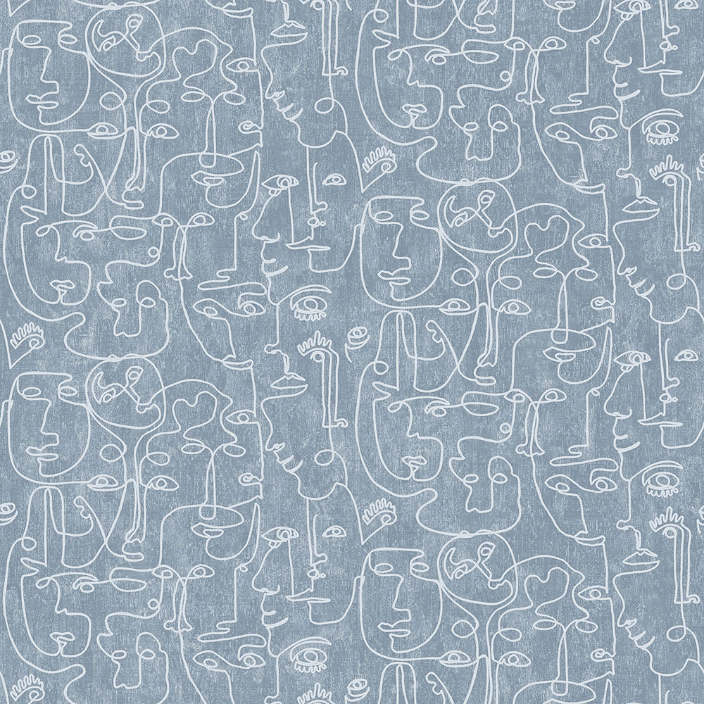 Vliesová grafická modro-šedá tapeta - obrysy tváří, obličejů.